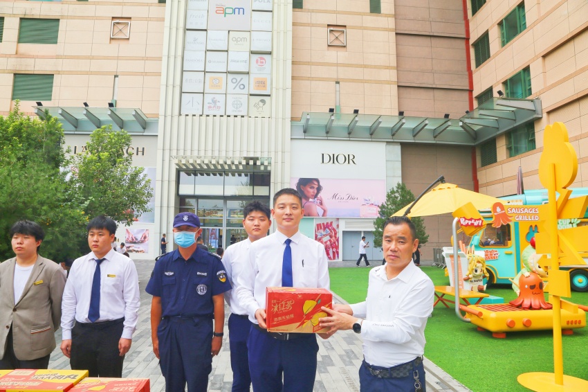 在慰问驻点保安队员时,公司常务副总经理胡华锋亲手将防暑降温礼包、饮用水等物资送到队员手中,关切询问大家“轮岗休息是否充足”“执勤装备是否到位”。九三庆祝活动是国家大事,你们驻守的每一个岗位,都是守护安全的重要防线!既肯定了队员们“顶烈日、守岗位”的奉献精神,也鼓励大家以“零差错、零疏漏”的标准严格履职,在关键时刻展现兴华保安的专业担当。队员们纷纷表示,将把公司的关怀转化为工作动力,坚决守住安全底线。
