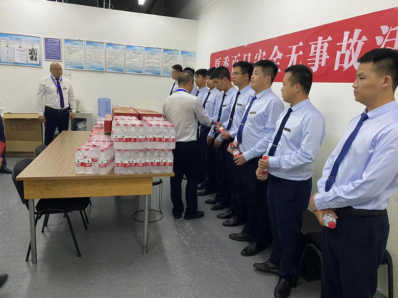 活动过程中,公司党支部副书记高江在相关运营经理的陪同下,走访慰问了合生汇购物中心、海峡国际大厦、三星大厦等保安驻勤项目。在送去茶叶、饮料、矿泉水等防暑解暑物品的同时与保安员们进行亲切交谈,细心嘱咐员工夏季高温作业时要多喝水、注意身体健康,防止高温中暑。在做好日常勤务工作的同时,一定要把安全时刻放在心上,严格按照上级公安监管机关和公司要求,做好各类消防安全隐患排查整治工作,加强动火作业和特种作业消防安全宣传教育力度,将各类隐患消灭在萌芽状态。