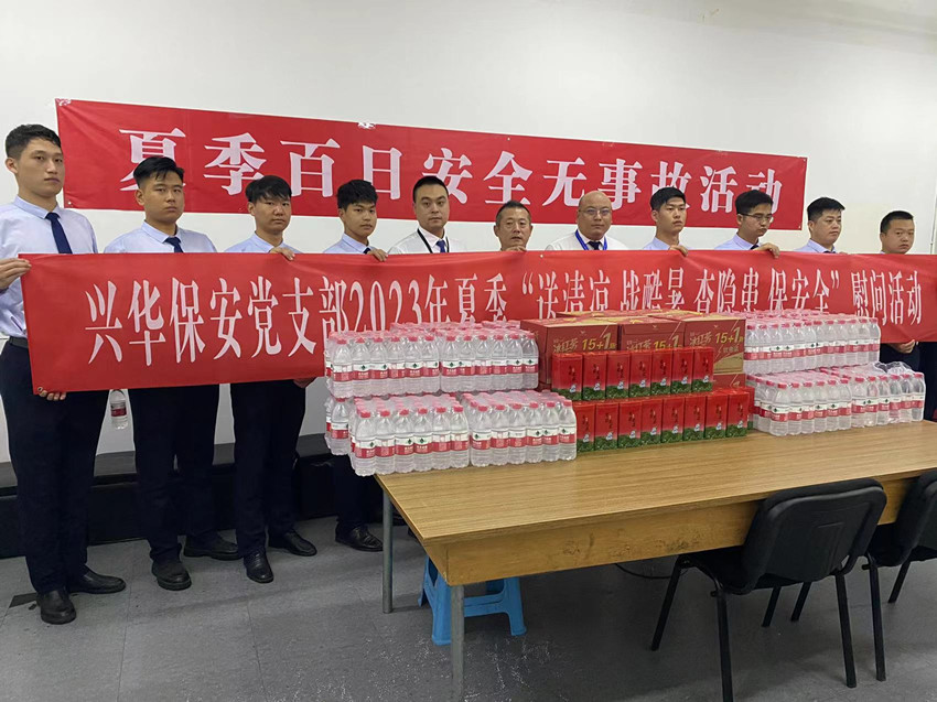 入伏以来,骄阳似火,酷热难当。为做好高温天气防暑降温工作,给奋战在一线的广大保安员送去清凉与关怀,深入将学习贯彻习近平新时代中国特色社会主义思想主题教育成效落到实处,7月13日兴华保安党支部开展了“送清凉、战酷暑、查隐患、保安全”主题党日慰问活动,为基层一线保安员们送去阵阵清凉,使一线职工充分感受到兴华保安大家庭的温暖。