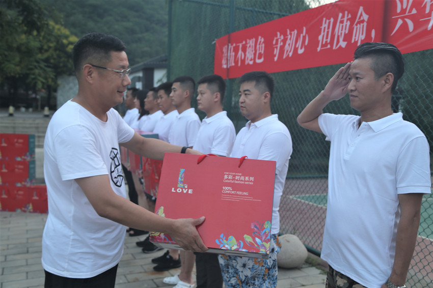 胡华三总经理代表公司向各位退役军人致以节日的问候,并指出:党领导的人民军队从无到有,从小到大,从弱到强,有着曲折而光荣的历史,为祖国和人民的解放和建设事业做出了丰功伟绩。历年来,公司高度重视人才培养,特别是复转军人队伍的培养。很多优秀军人退役后加入了兴华保安这个大家庭,大部分人能够迅速适应环境,胜任角色,发扬军人过硬作风,在各自岗位上为公司的发展作出了积极的贡献。特别是疫情防控中表现出的不怕牺牲、吃苦耐劳、艰苦拼搏、自觉奉献的精神更是让我感动。希望大家能够继续发扬听党指挥、能打胜仗、作风优良的军人本色,在各自岗位上发挥模范带头作用,全力推进公司高质量发展,再创新成绩再铸新辉煌。