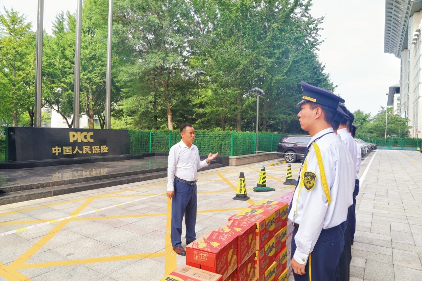 在慰问驻点保安队员时,公司常务副总经理胡华锋亲手将防暑降温礼包、饮用水等物资送到队员手中,关切询问大家“轮岗休息是否充足”“执勤装备是否到位”。九三庆祝活动是国家大事,你们驻守的每一个岗位,都是守护安全的重要防线!既肯定了队员们“顶烈日、守岗位”的奉献精神,也鼓励大家以“零差错、零疏漏”的标准严格履职,在关键时刻展现兴华保安的专业担当。队员们纷纷表示,将把公司的关怀转化为工作动力,坚决守住安全底线。